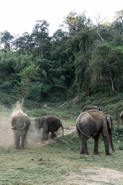Our santuary was not buit to trick toursists into caring for elephants. Elephants are never forced to do anything. They simply live their normal daily live in their natural habittal. There are no bathing, no cages, no chains, no riding or Performances. Each elephant decides for itself when to eat or go to the river.